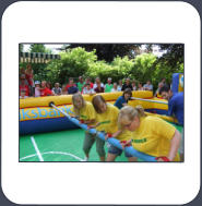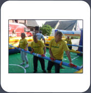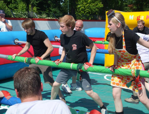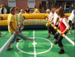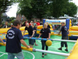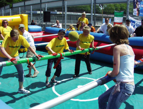Im wahrsten Sinne des Wortes am Ball ist die Straßengemeinschaft bei Menschenkicker-Turnieren. Egal, ob
