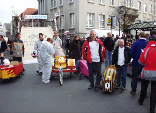 Das Rennfieber steigt. Nach dem erfolgreichen Seifenkistenrennen im Jahr 2003 ist im Sommer 2011 eine Neuauflage geplant. Wer Interesse hat, kann sich melden bei: Detlef Peter Jotzeit, Siemensweg 18 b, 59229 Ahlen
